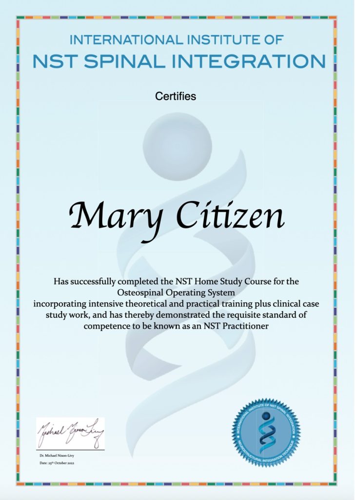 Osteospinal OS – Home Study Course – Certificate of Achievement as an NST Practitioner